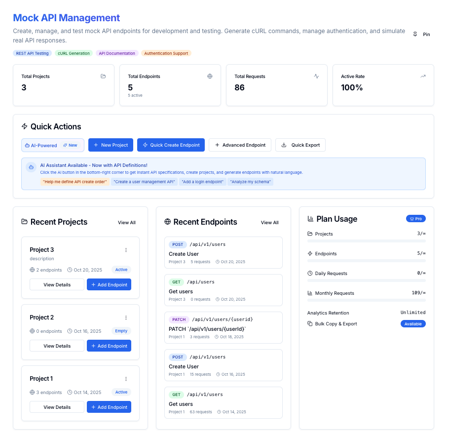 Mock API Management lets you spin up AI-generated, production-ready mock endpoints in seconds. Build real user flows now, integrate the real backend later—without rework.